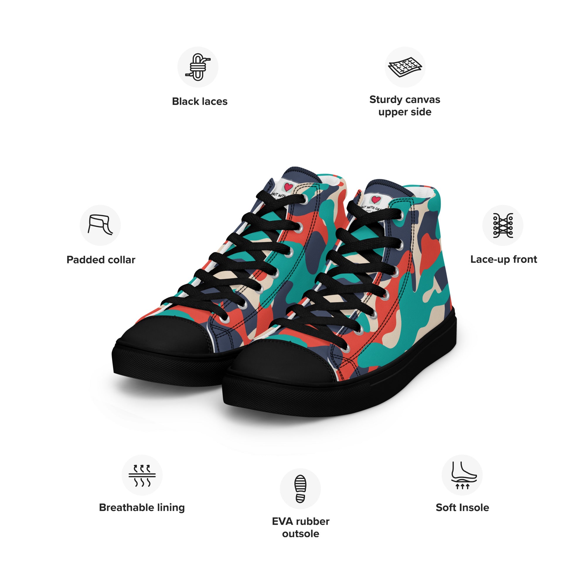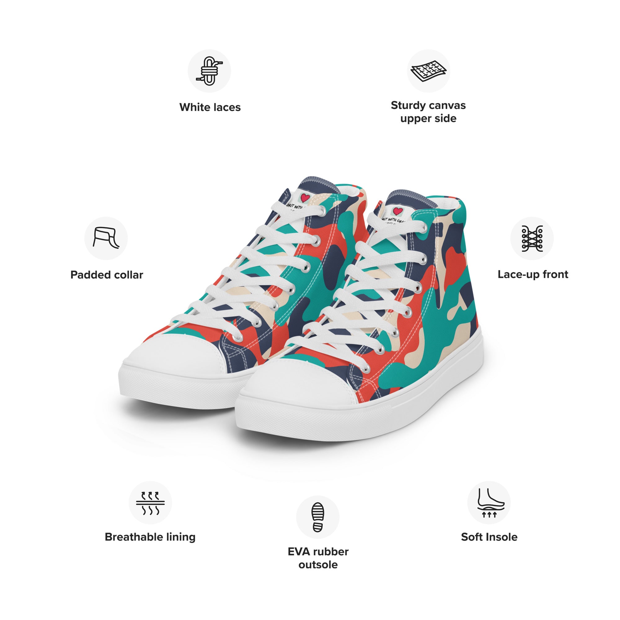 Don’t miss out on the chance to elevate your style with the Grit with Grace Army Camouflage High Top Canvas Shoes. Step out with confidence and let your footwear speak volumes about your adventurous spirit. Order now and conquer every stride!