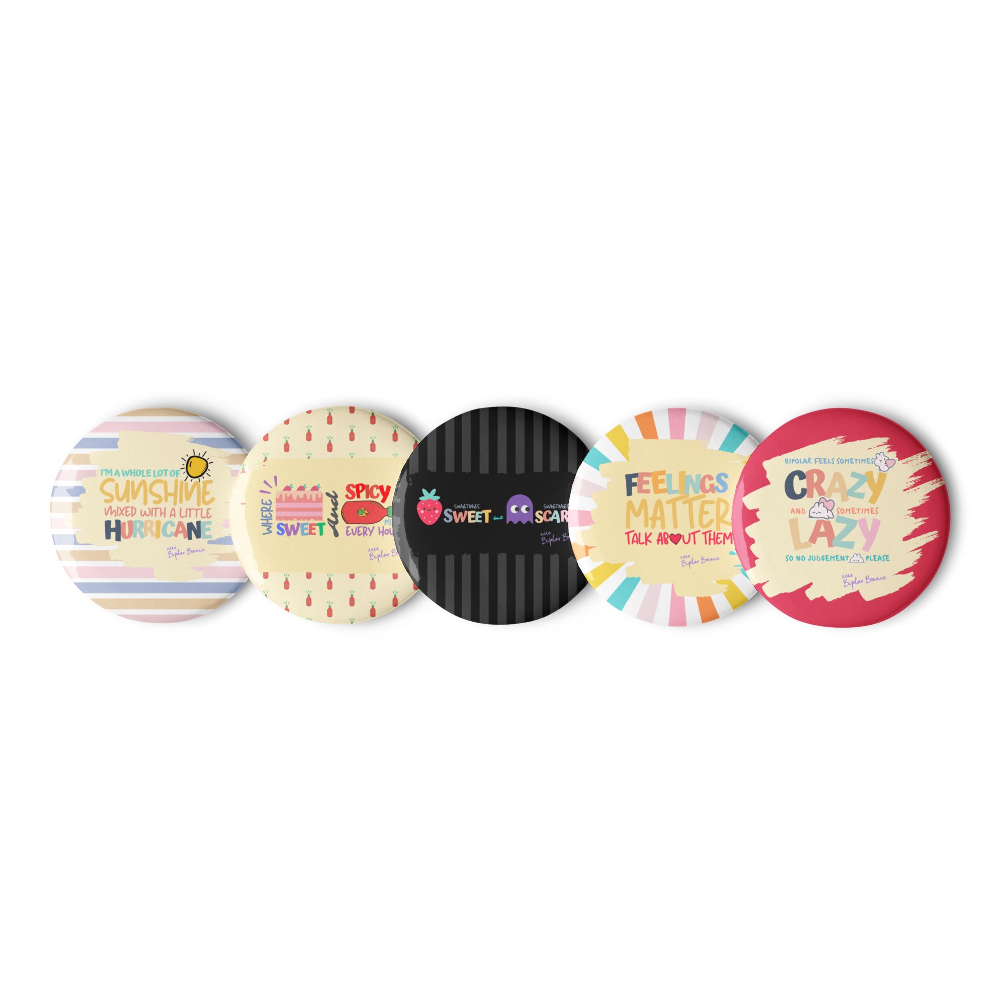 Express Yourself with the Bipolar Bonnie Series Set of Pin Buttons
