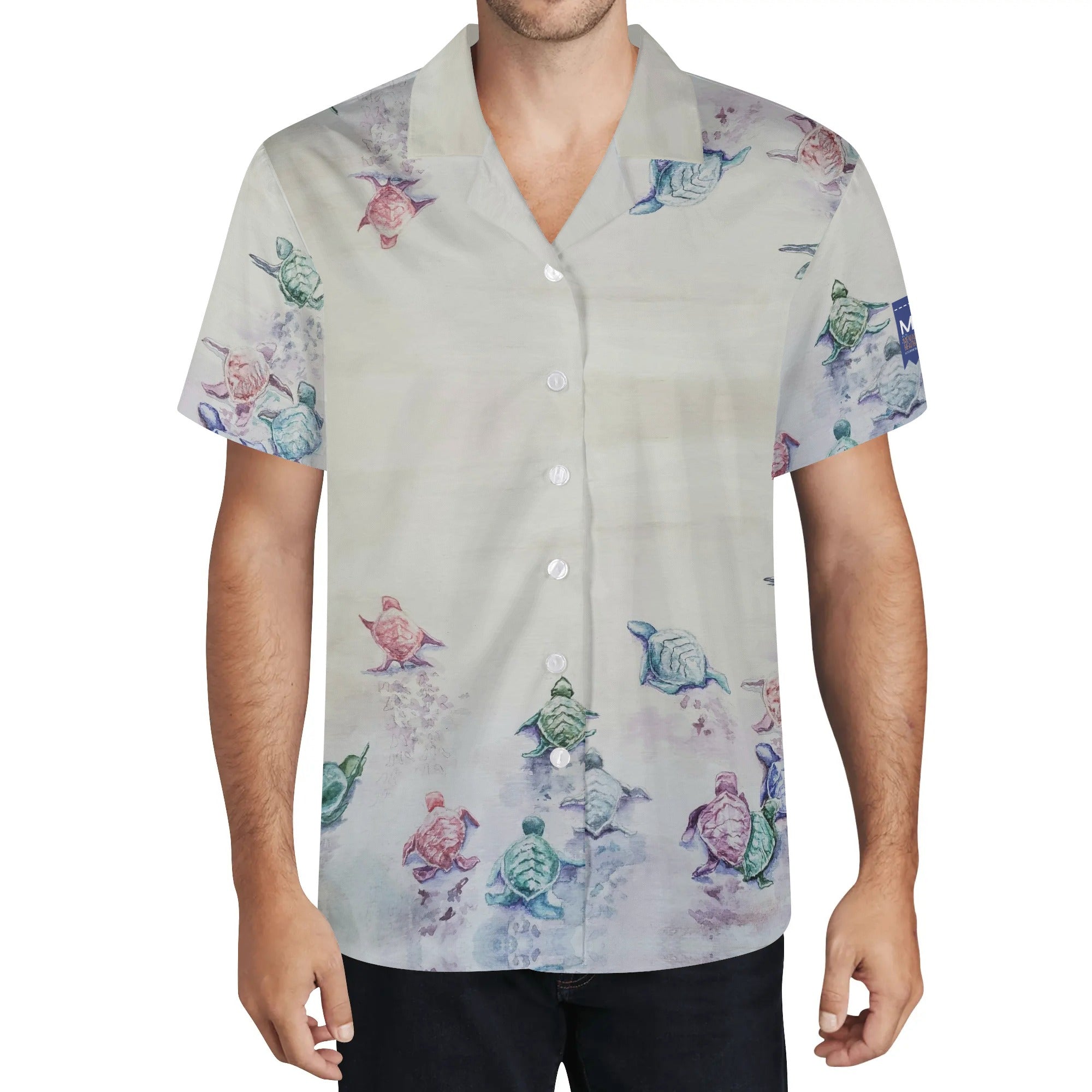 Cool Dad Collection: Men’s Sea Turtles Short Sleeve Button Down Shirt with Cuban Collar