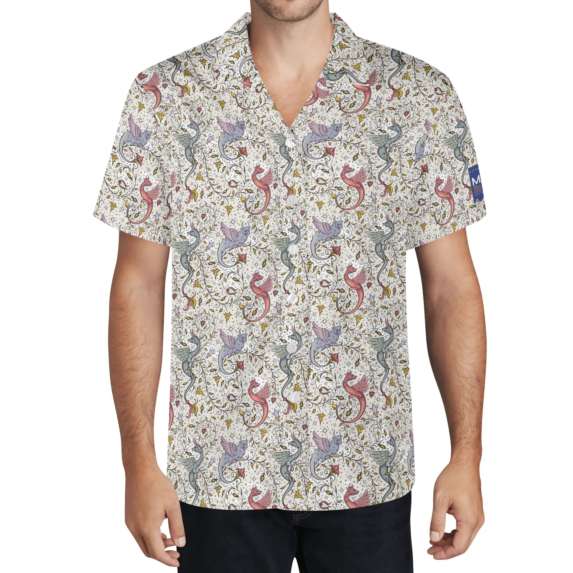 Cool Dad Collection: Men’s Multicolor Phoenix Short Sleeve Button Down Shirt with Cuban Collar