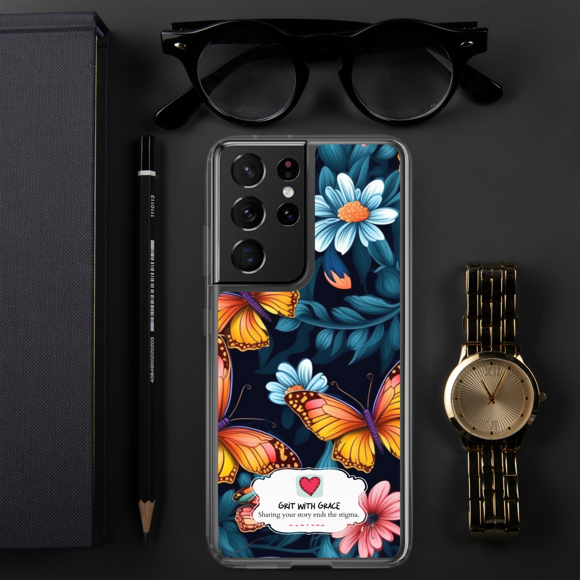 Thank you for choosing Grit with Grace, your ultimate destination for enchanting accessories that seamlessly blend sophistication with the delicate beauty of butterflies! We're excited to present our latest creation – a Samsung case designed for the true butterfly enthusiast!