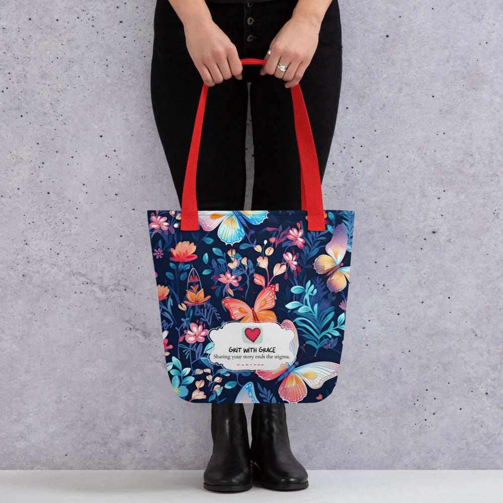 Thank you for choosing Grit with Grace, your ultimate destination for enchanting accessories that seamlessly blend sophistication with the delicate beauty of butterflies! We're delighted to introduce our latest creation – a tote bag designed for the true butterfly enthusiast!