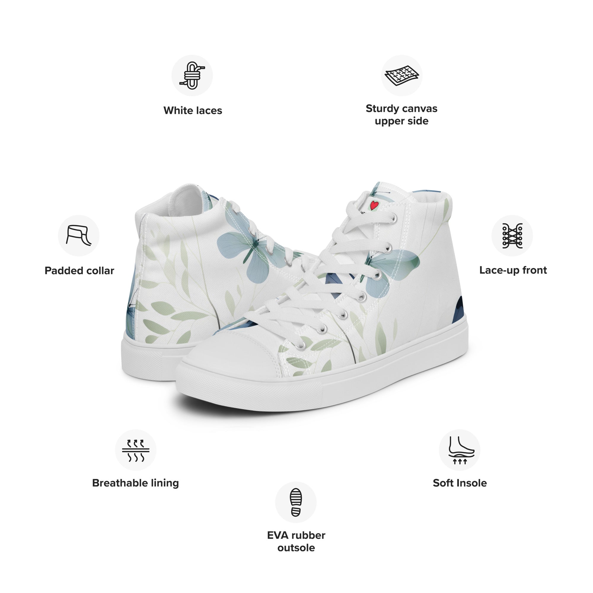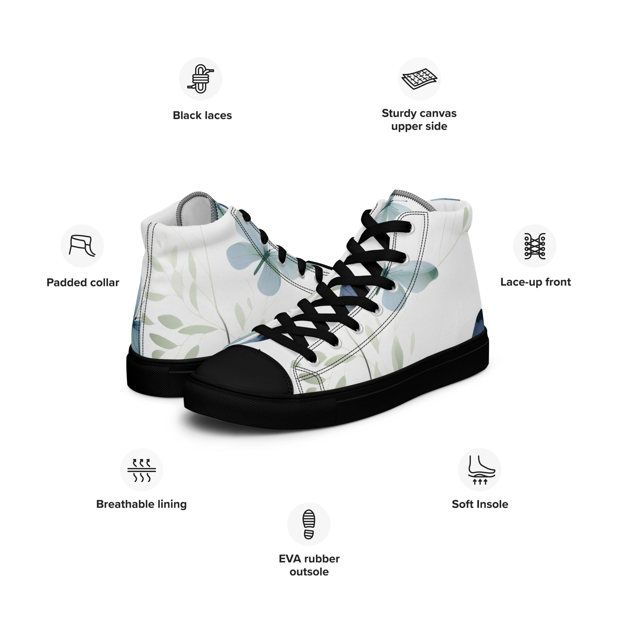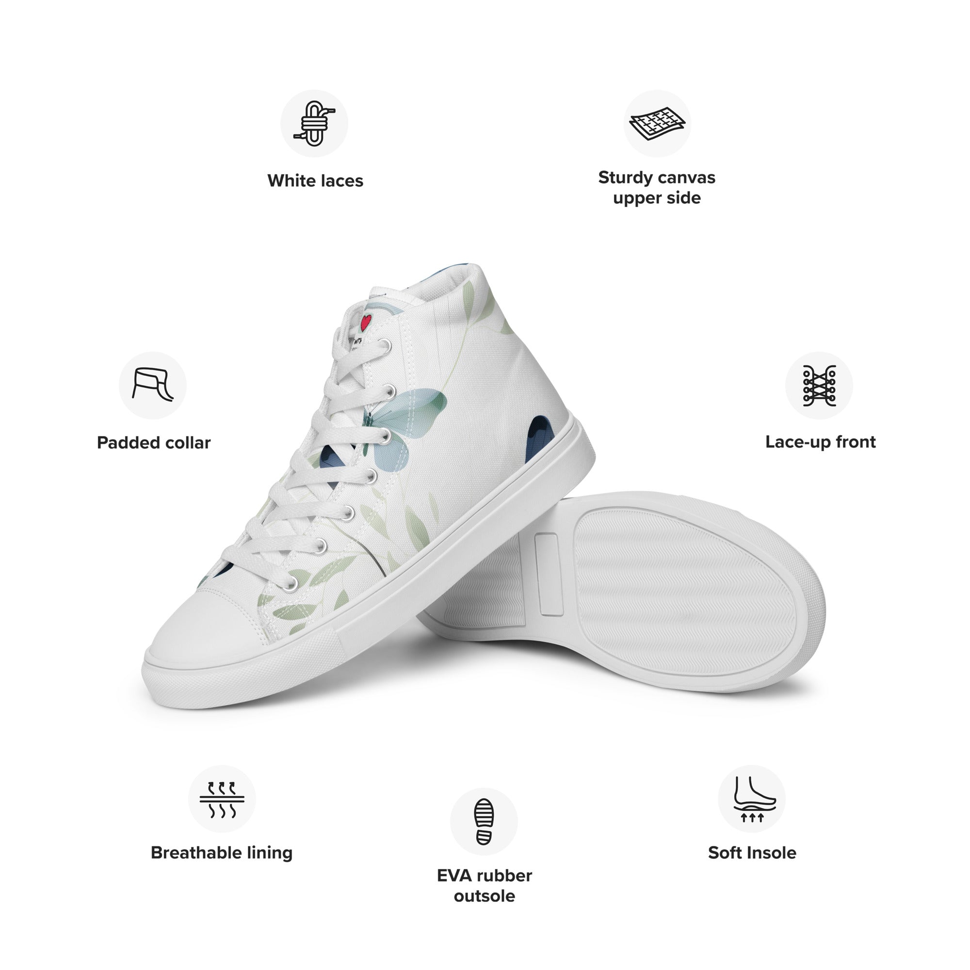 Elevate your footwear, embrace the perennial magic of butterflies, and leave a lasting impression. Order your butterfly-inspired high-top canvas shoes today and let the world witness your understated yet profound passion for the timeless beauty of these graceful creatures. Your journey into refined, nature-infused elegance starts here – secure it now!