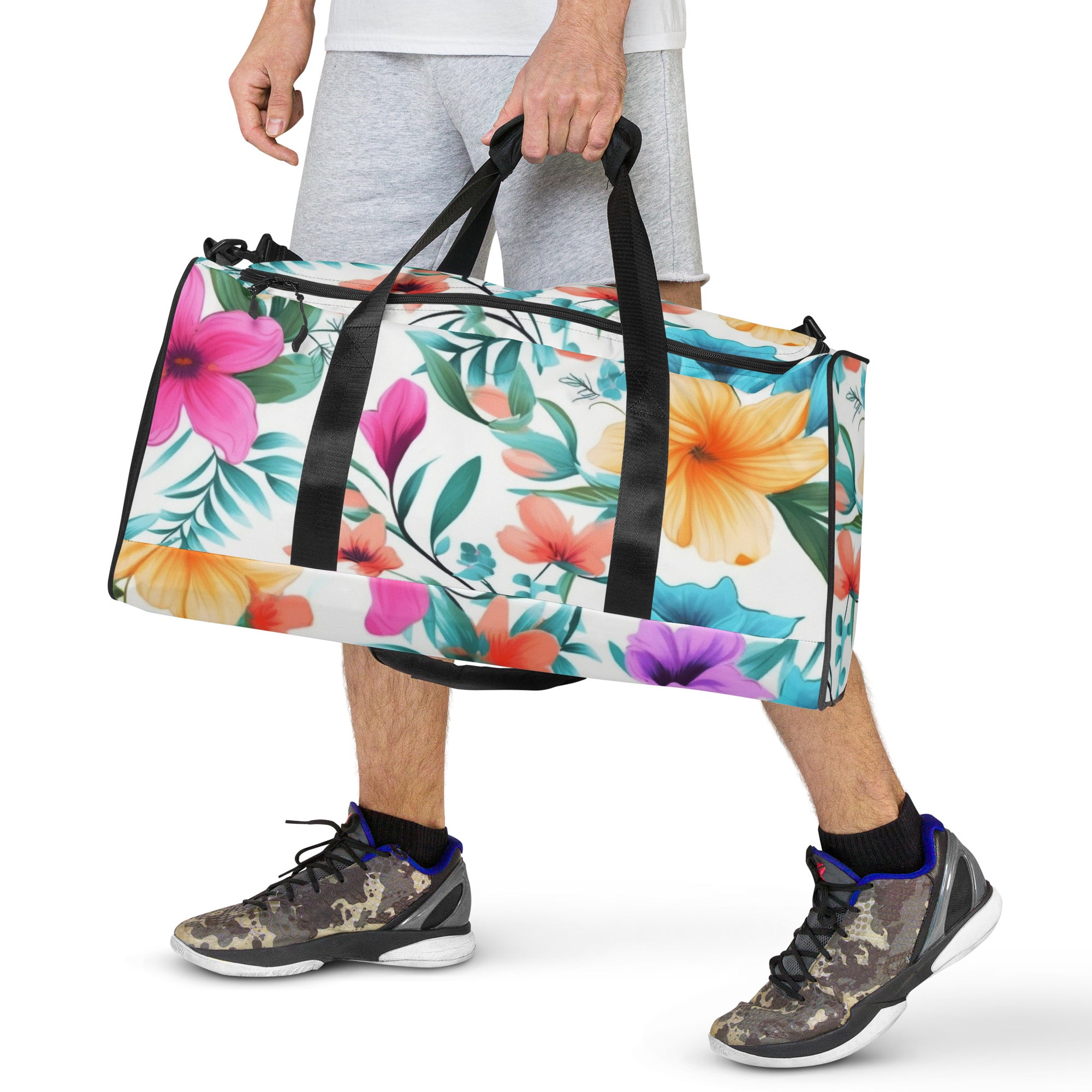 Floral Duffle Bag, Flower Lover Gym Bag, Botanical Travel Bag, Flower Enthusiast Bag, Blossom Duffle, Lovely Bloom Carryall, Spring Inspired Luggage