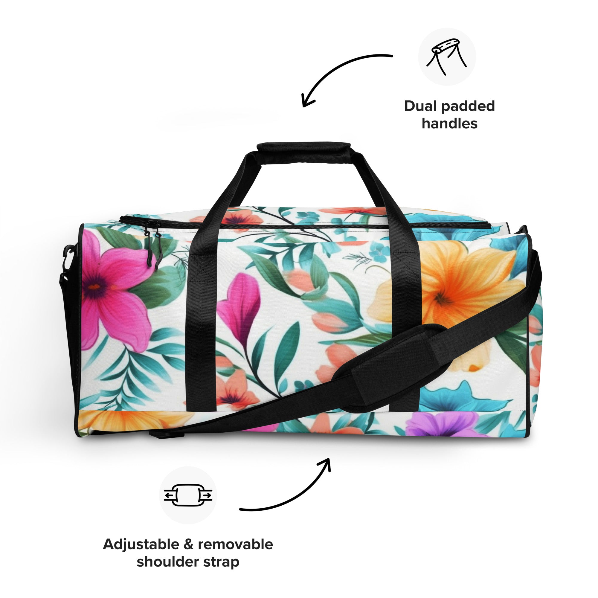 Elevate your travel style, embrace the perennial magic of nature, and leave a lasting impression. Order your Bloom Essence Duffle Bag today and let the world witness your understated yet profound passion for the timeless beauty of flowers. Your journey into refined, nature-infused elegance starts here – secure it now!