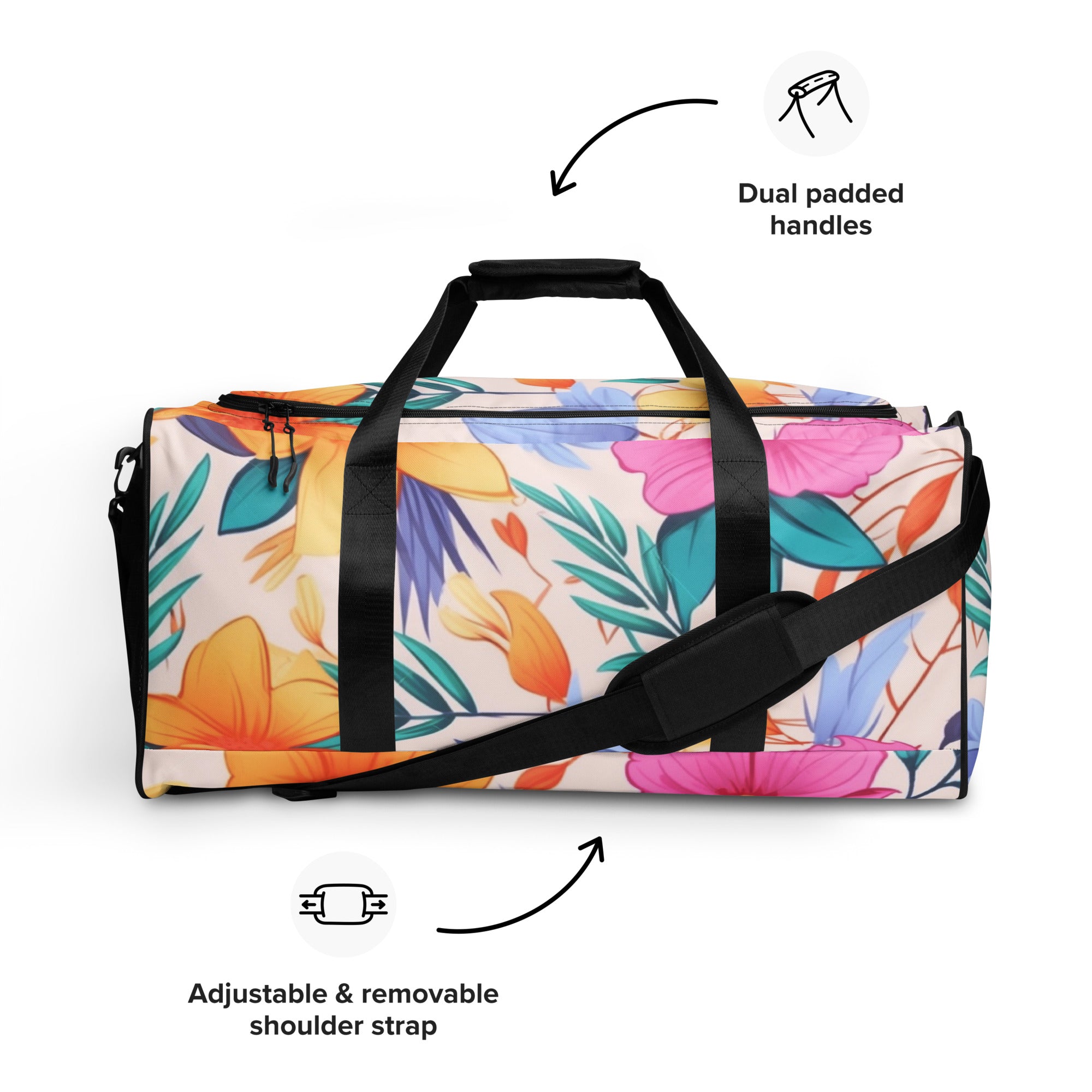 Elevate your travel style, embrace the perennial magic of nature, and leave a lasting impression. Order your Bloom Essence Duffle Bag today and let the world witness your understated yet profound passion for the timeless beauty of flowers. Your journey into refined, nature-infused elegance starts here – secure it now!