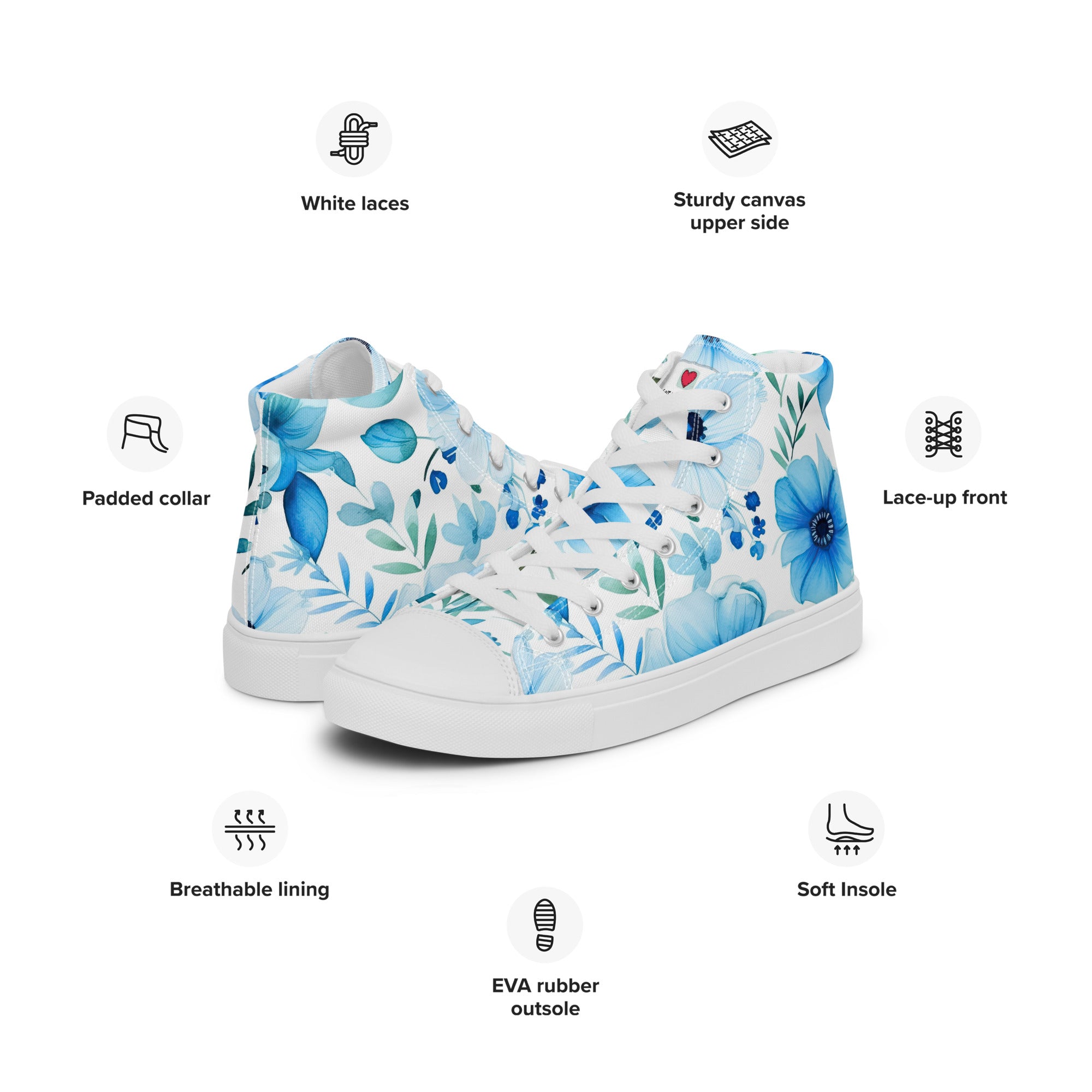 Our high-top canvas shoes, created with meticulous attention to quality, boast premium materials that ensure not only visual appeal but also durability. They stand as a testament to our dedication to providing you with footwear that is not only stylish but also a reliable companion in your floral-infused adventures.