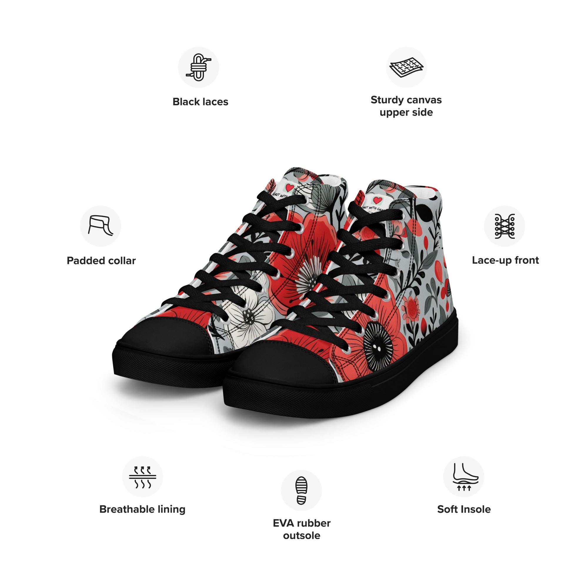 Grit with Grace is not just a store; it's a sanctuary for those who appreciate the delicate beauty of flowers. These floral-inspired high-top canvas shoes are just the beginning. Explore our curated collection to unearth more wonders that resonate with your admiration for the natural world.