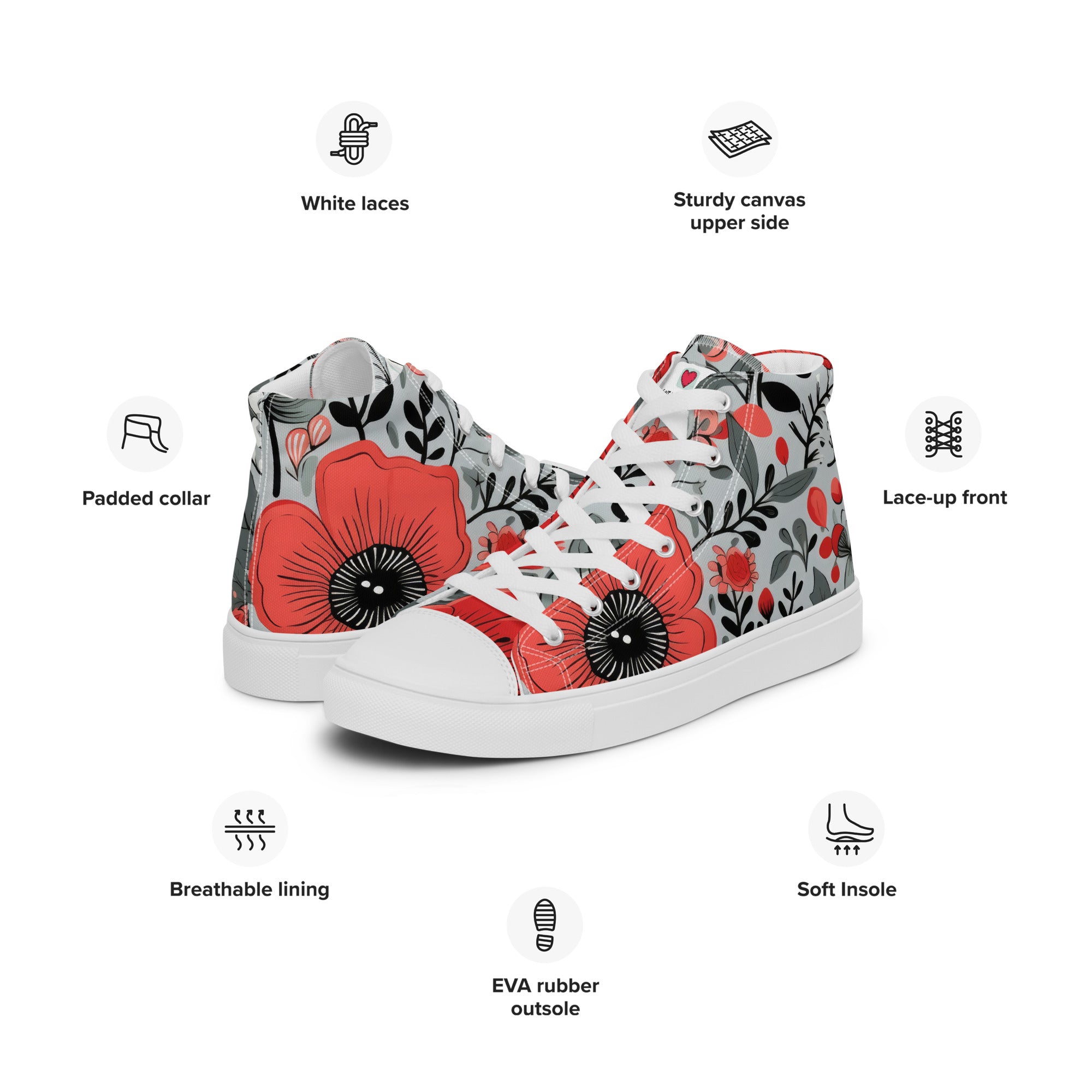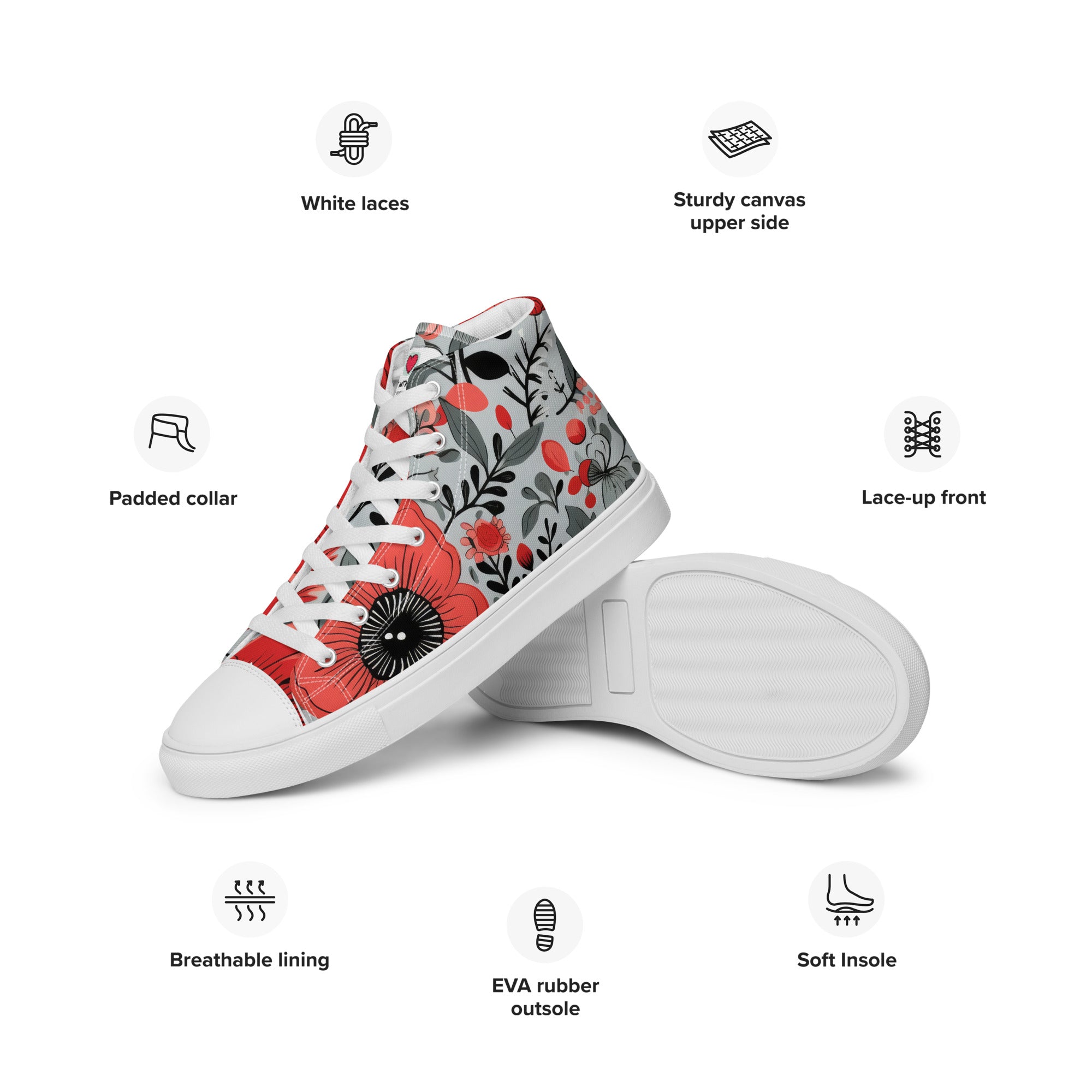 Elevate your footwear, embrace the perennial magic of nature, and leave a lasting impression. Order your floral-inspired high-top canvas shoes today and let the world witness your understated yet profound passion for the timeless beauty of flowers. Your journey into refined, nature-infused elegance starts here – secure it now!
