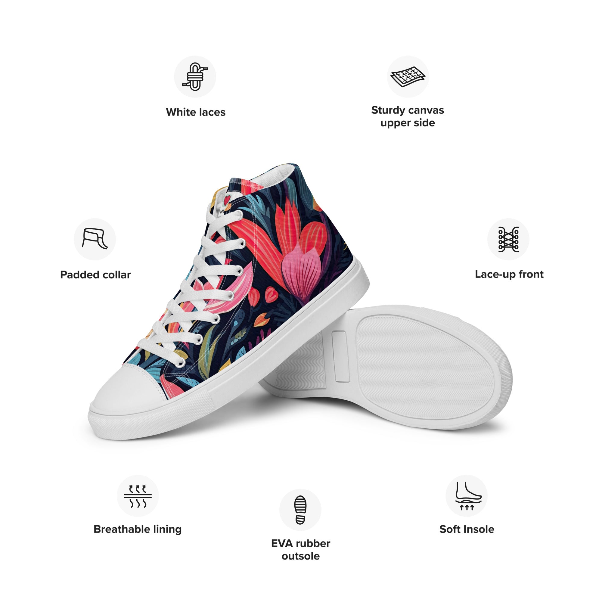 Elevate your footwear, embrace the perennial magic of nature, and leave a lasting impression. Order your floral-inspired high-top canvas shoes today and let the world witness your understated yet profound passion for the timeless beauty of flowers. Your journey into refined, nature-infused elegance starts here – secure it now!