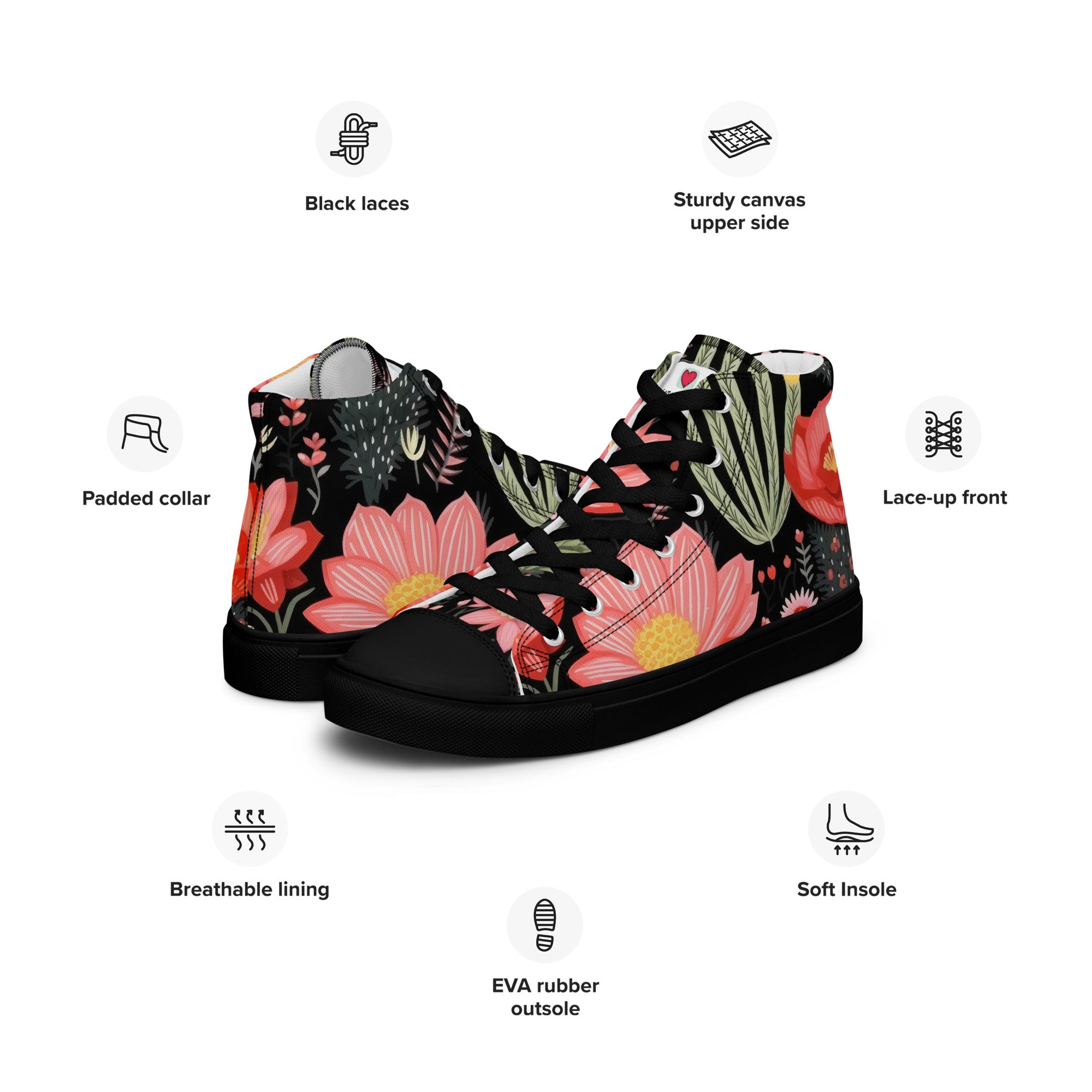 Elevate your footwear, embrace the perennial magic of nature, and leave a lasting impression. Order your floral-inspired high-top canvas shoes today and let the world witness your understated yet profound passion for the timeless beauty of flowers. Your journey into refined, nature-infused elegance starts here – secure it now!